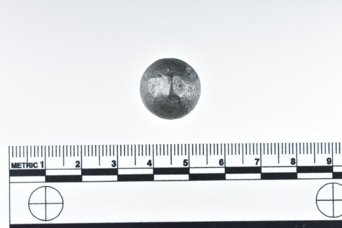 1.7 x 1.6 cm. 27.37 grams. One of ten musket shot (1986.008.2952a--j). Originally from a batch of various musket and arquebus shot accessioned under two numbers: 1986.008.2026 and 1986.008.2027.