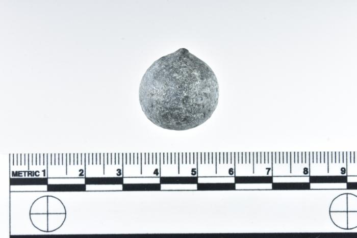 2.0 x 1.9 cm. 47.00 grams. One of ten musket shot (1986.008.2958a--j). Originally from a batch of various musket and arquebus shot accessioned under two numbers: 1986.008.2026 and 1986.008.2027.